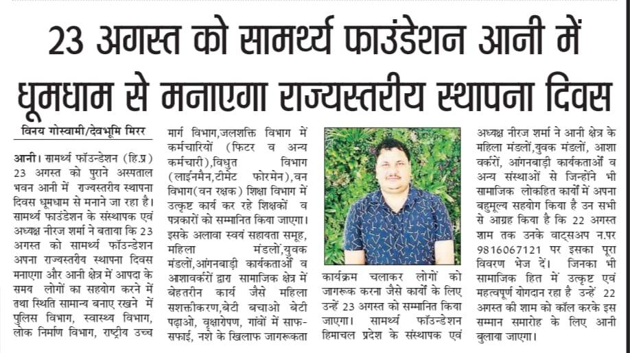 Registered Office :- Bhagwati Niwas, V.P.O-ANNI TEHSIL-ANNI DISTT.-KULLU (H.P) 172026